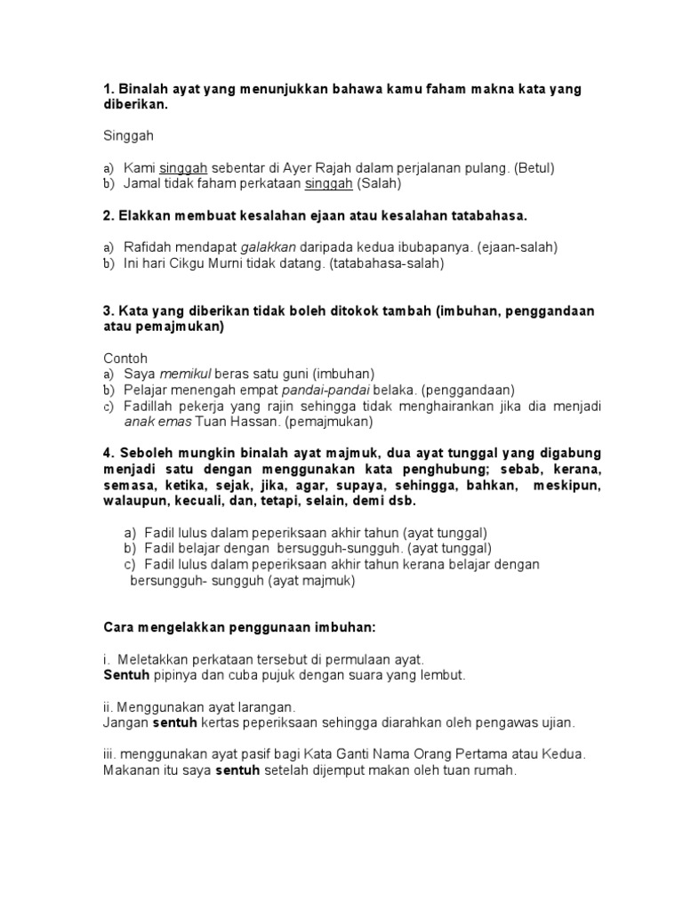 Baca baca dan baca. Bina ayat tunggal dengan menggunakan kata arah secara lisan. Kertas 1 2 bina ayat.