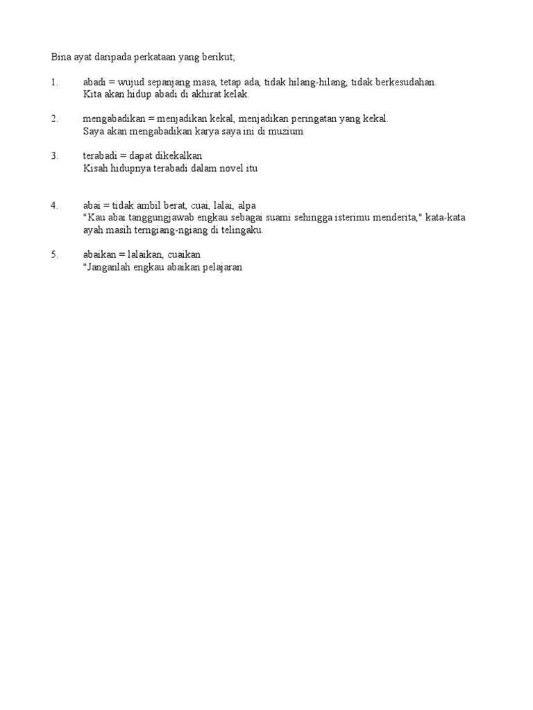 Jangan tinggalkan imbuhan atau tambah imbuhan pada perkataan yang diberi. Berasal dari Jalan Pahang Kuala Lumpur. Bina ayat contoh ayat untuk perkataan.