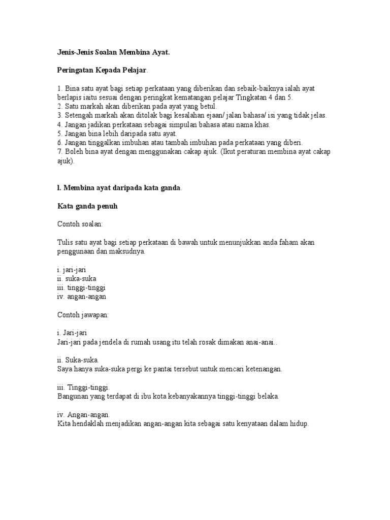 For more information and source. Pengetahuan dan Kemahiran Tatabahasa Contoh Bina Ayat 2 Posted September 14 2012 by tatapanminda in Bahasa Malaysia Tatabahasa TINGKATAN 5. Check spelling or type a new query.