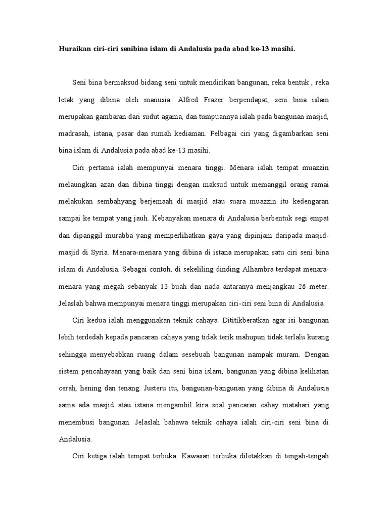 Contoh surat akuan sumpah tanah love you mr arrogant huraikan lima 5 langkah ke arah mewujudkan perpaduan dalam kalangan pelajar belakang parang diasah lagikan tajam dskp kssm pendidikan khas tingkatan 2 kanser payudara tahap 1 borang penilaian keberkesanan. Huraikan ciri-ciri utama seni bina Islam. Seni bina Islam merupakan sebahagian cabang dari bidang seni yang dihasilkan oleh sesuatu kelompok masyarakat manusia yang mempunyai fitrah semula jadi cintakan sesuatu keindahan.