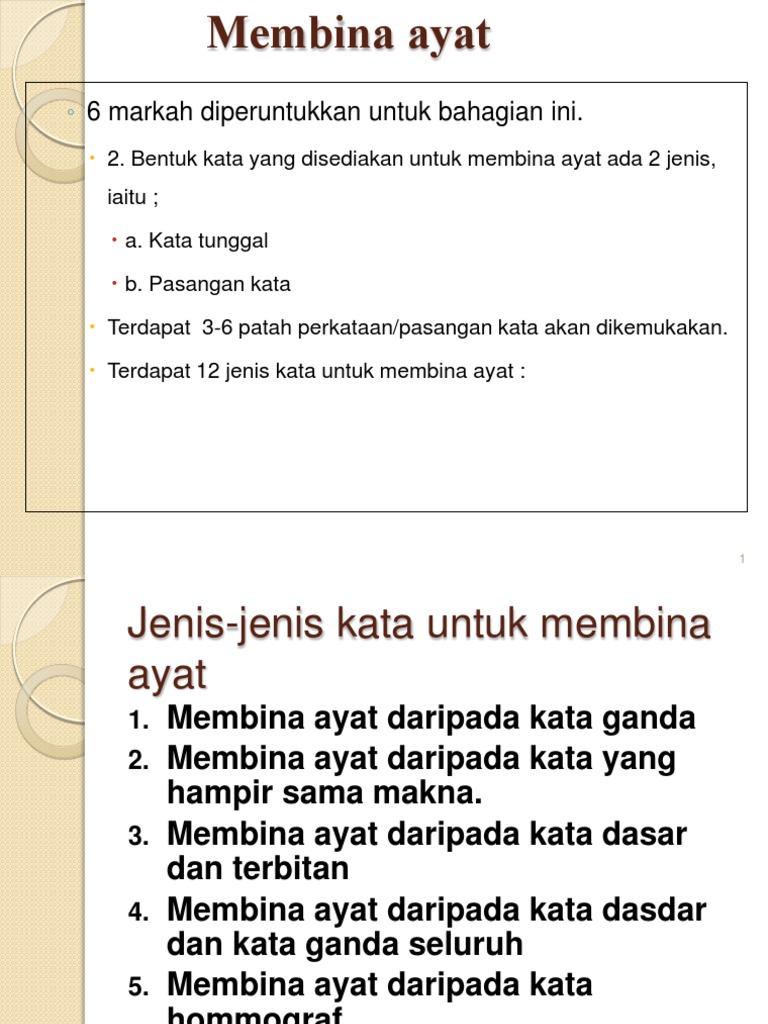 Bina ayat menggunakan perkataan sama. Huruf B juga digunakan sebagai not muzik. 22 TEKNIK MEMBINA AYAT Orang tua yang bongkok itu berjalan dengan menggunakan tongkat betul Elak menggunakan semua perkataan yang diberikan untuk membina SATU ayat sahaja. 10000 keputusan untuk bina ayat menggunakan perkataan kata Bina ayat menggunakan kata majmuk Roda rawak.
