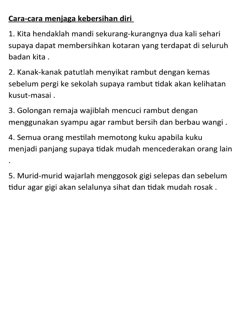 Latihan Bina Ayat 1. Karangan Cara Cara Menjaga Kebersihan Diri Pt3. Httpsgambarin30webappayat-cara-cara-menjaga-kebersihan-dirihtml Kssr Bm Bina Ayat Program Kesihatan Di Sekolah.