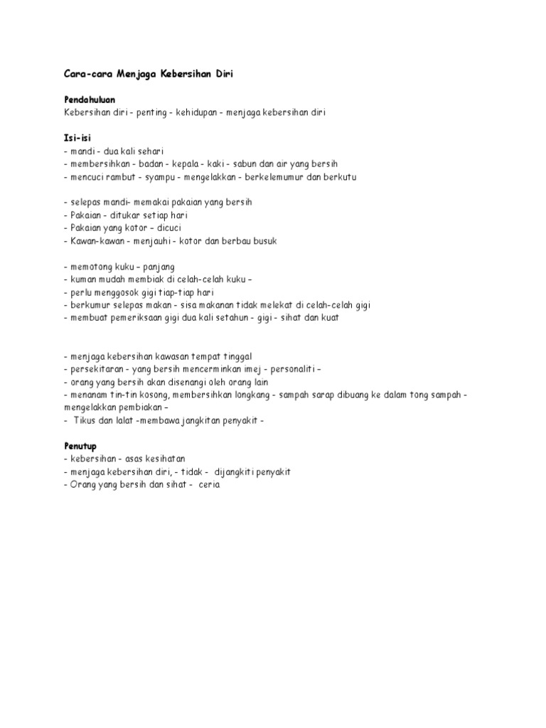 Cara Cara Menjaga Kebersihan Diri Contoh Karangan. Lingkungan dan pola hidup yang kurang sehat pun memperburuk situasi yang ada. Start studying bina ayat cara cara menjaga kesihatan.